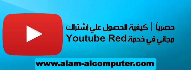السلام عليكم ورحمة الله وبركاته ، حتماً ولا بد أنك سمعت في الأونة الأخيرة عن خدمة اليوتيوب الجديدة youtube red أو اليوتيوب الأحمر ، فهل تود تجربتها ؟ وتخشي أن لا تخسر أموالك عند الإشتراك بالخدمة وتكتشف أن الموضوع لا يستحق الإشتراك بالنسبة لك ؟ ، حسنأ دعني أقدم لك طريقة حصرية موجودة فقط في مدونتا عالم الكمبيوتر لكيفية الحصول علي إشتراك مجاني مدته أربعة عشرة يوماً لتجربة الخدمة ، ولكن قبل البدء في الطريقة دعوني أذكر مزايا الخدمة لمن لا يعرفها